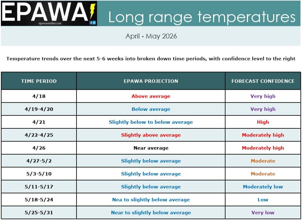 EPAWA’s long range outlook is updated weekly every Friday morning before noon